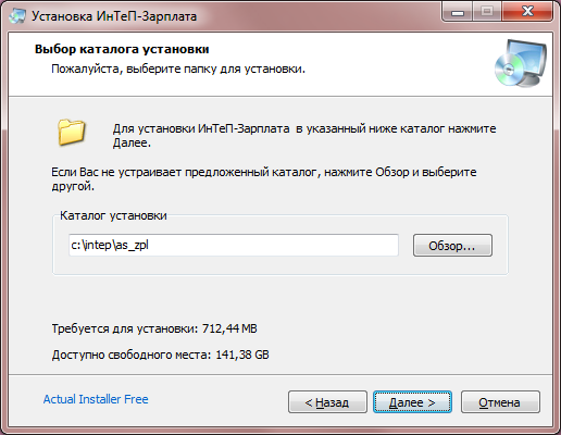 2. В окне выбора каталога установки оставьте каталог по умолчанию или выберите другой с помощью кнопки «Обзор».