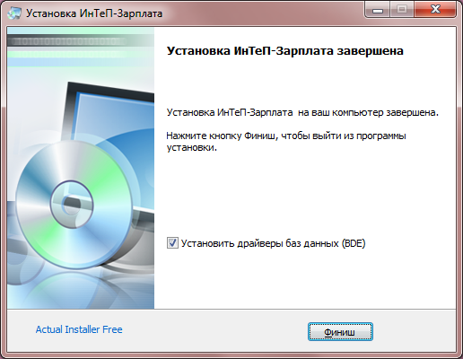 Нажмите кнопку «Финиш» для закрытия программы установки.