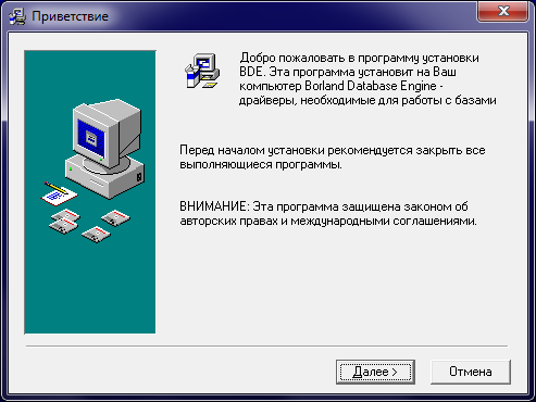 Если на вашем компьютере уже установлены драйверы баз данных BDE, то можно снять соответствующую «галочку».